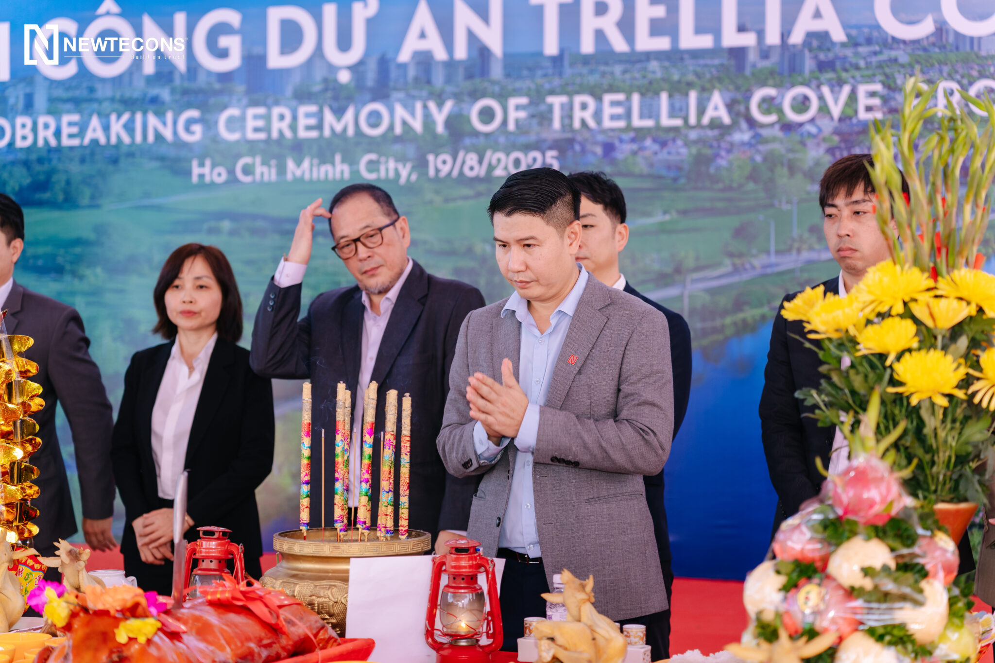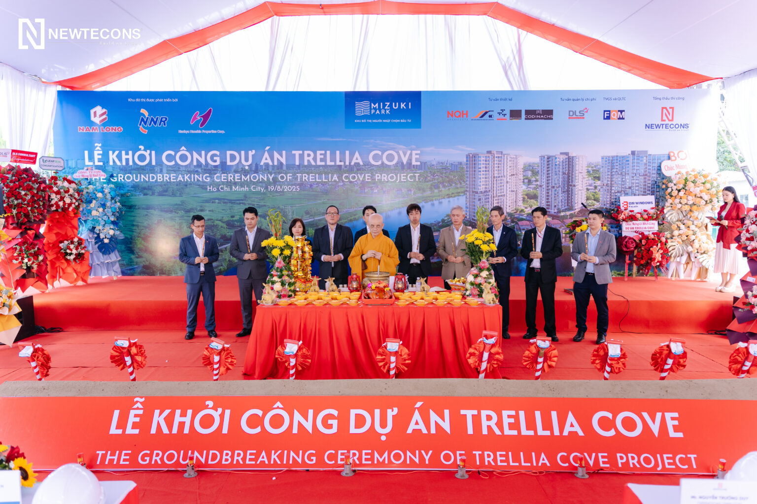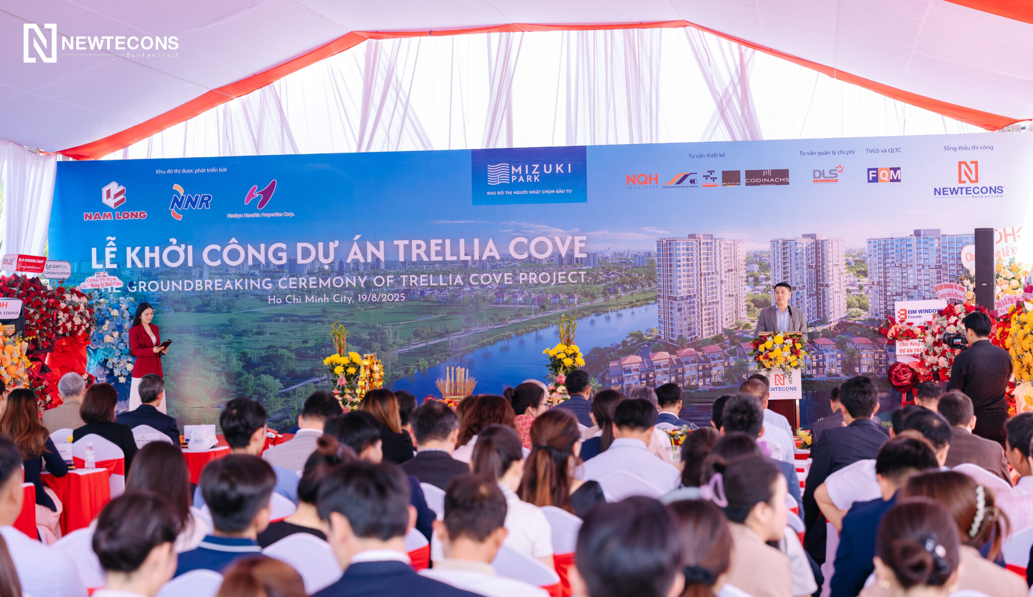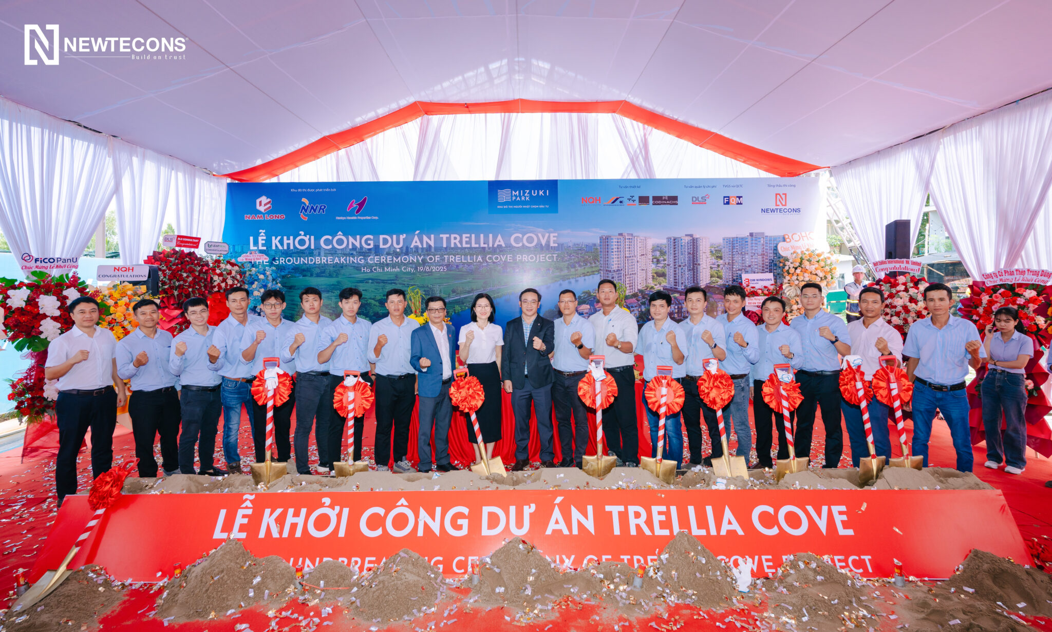 Phối cảnh Dự ánNgày 19/8/2025, Newtecons tổ chức khởi công dự án Trellia Cove (tên pháp lý: Chung cư CC5 và Câu lạc bộ 3 – Giai đoạn 4 thuộc Khu nhà ở Nguyên Sơn, xã Bình Hưng, TP.HCM). Dự án do Nam Long và hai doanh nghiệp hơn 100 năm kinh nghiệm từ Nhật Bản là Hankyu Hanshin Properties và Nishi Nippon Railroad hợp tác phát triển.